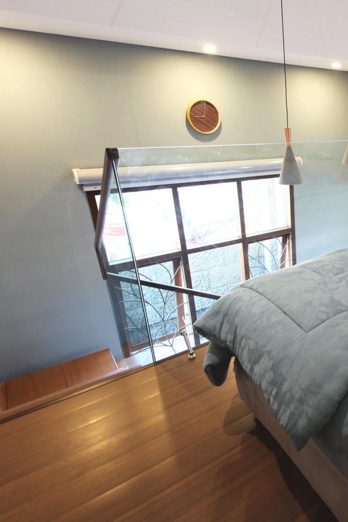 Di kamar Gary, kami mengakomodasi kebutuhan ini dengan memanfaatkan langit-langit yang kosong. Dalam prosesnya, kami merekonstruksi dan memodifikasi struktur yang ada dengan menghilangkan rangka. Sentuhan akhir kami adalah memanfaatkan heat insulator agar penghawaan kamar mezzanine ini lebih baik.