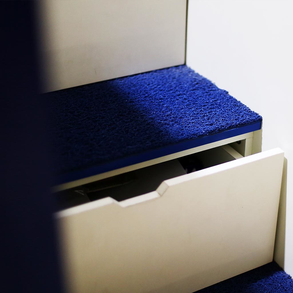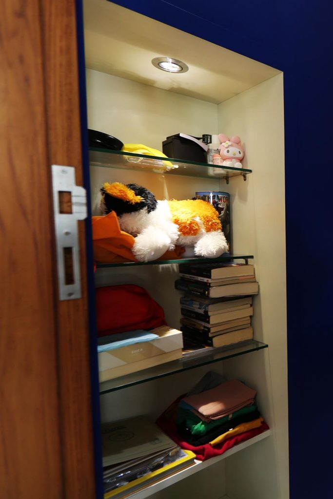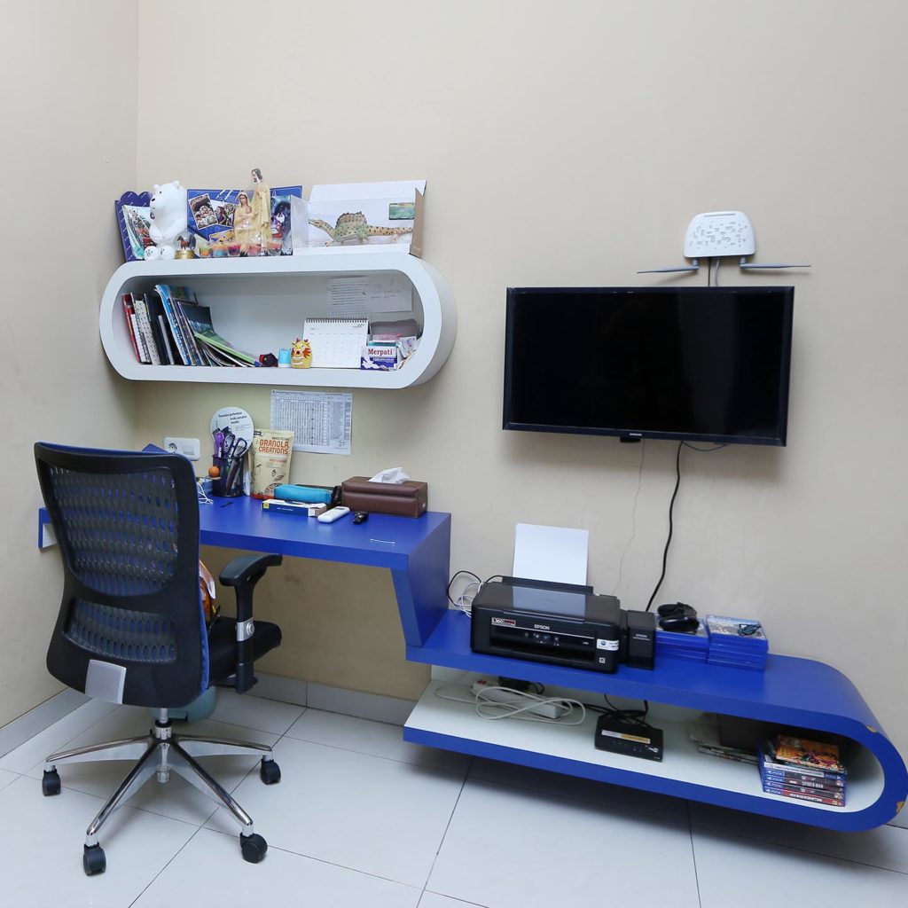 Kebutuhannya akan kamar yang bisa mengakomodasi teman-teman yang sering menginap di rumahnya mendorong kami untuk menyediakan kasur bertingkat.